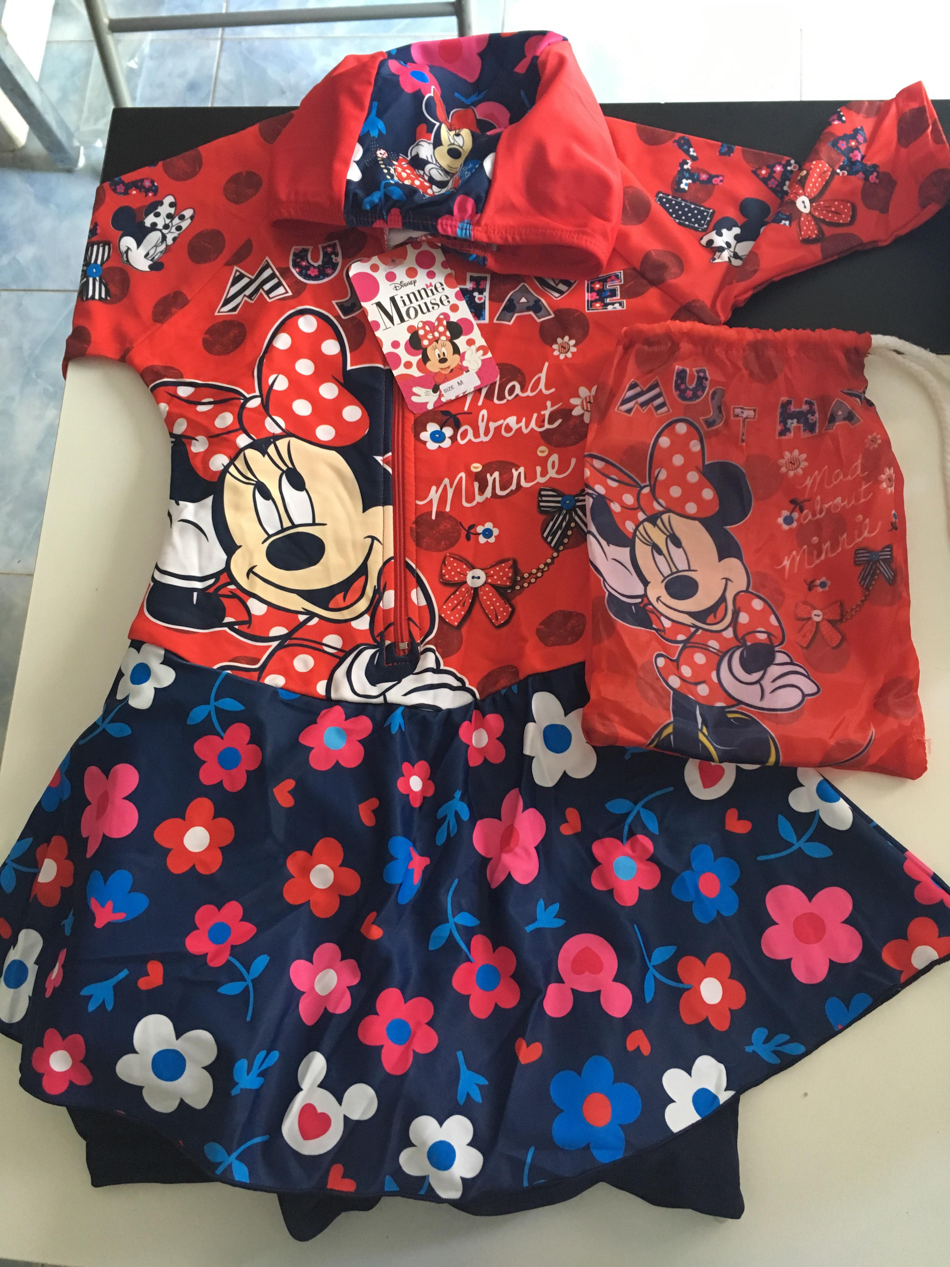 ↳ (size M)Swimsuit for Girls ชุดว่ายน้ำ เด็กผู้หญิง Disney Minnie Mouse บอดี้สูทเสื้อแขนยาว กระโปรงกางเกง มาพร้อมหมวกว่ายน้ำและถุงผ้า สุดน่ารัก ใส่สบาย ดิสนีย์แท้ ลิขสิทธิ์แท้(สำหรับเด็กอายุ 6 ปี)