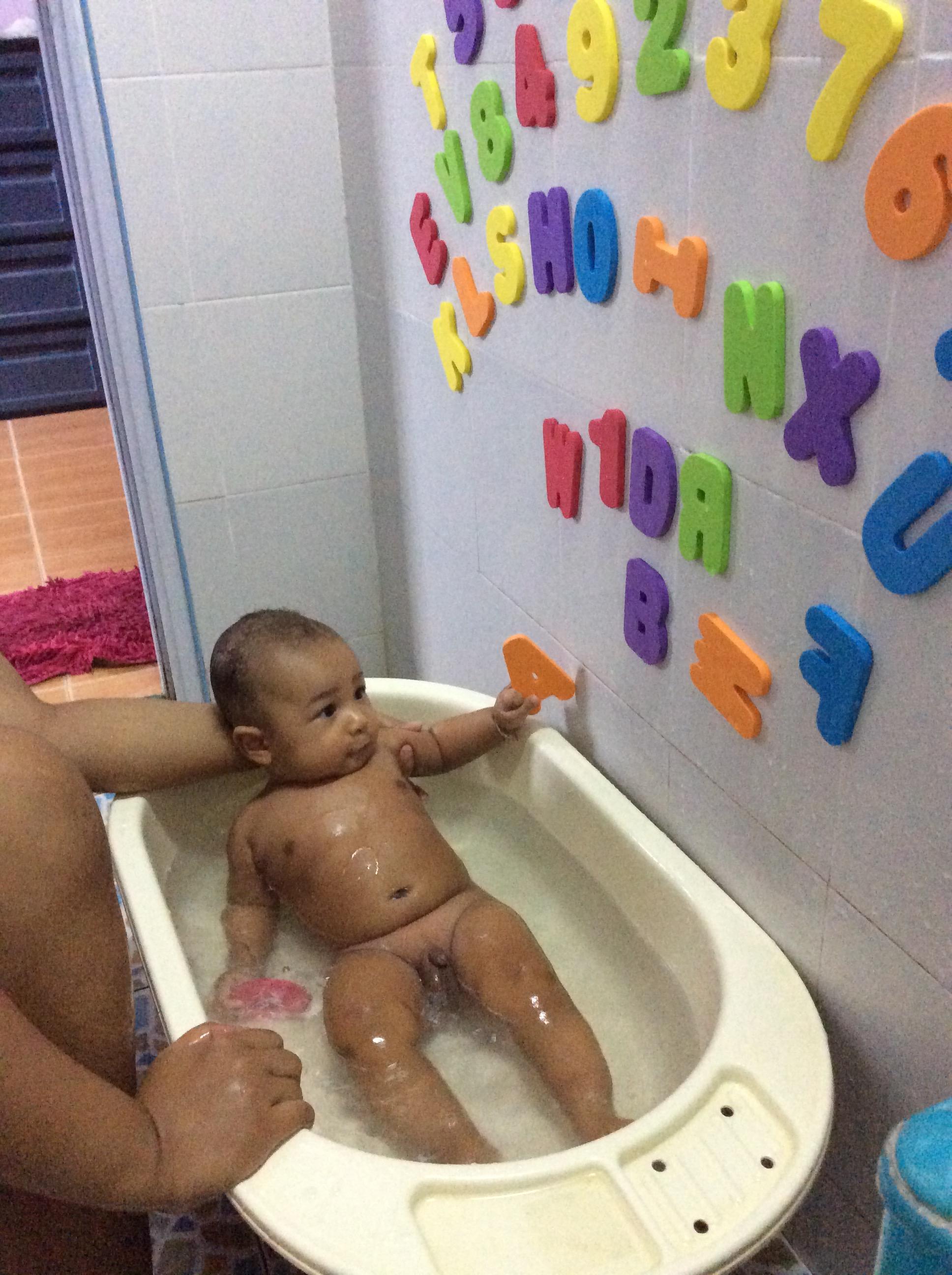 โฟมติดผนังสีสันสดใสถูกใจคุณแม่ น้องชอบมองเวลาอาบน้ำ น้องไม่งอแงเวลาอาบน้ำค่ะ อาบน้ำเพลินเลยทีเดียว