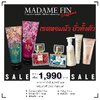 น้ำหอมมาดามฟินคลาสสิค 2 กล่อง โลชั่นดอกไม้ 2 หลอด ยินดีมูส 1 ขวด ยินดีเซรั่ม 1 หลอด โลชั่นเลิฟ 1 หลอด เพียง 1,990 บาท (แจ้งกลิ่นน้ำหอมและสีโลชั่นที่ต้องการตรงช่องหมายเหตุ)