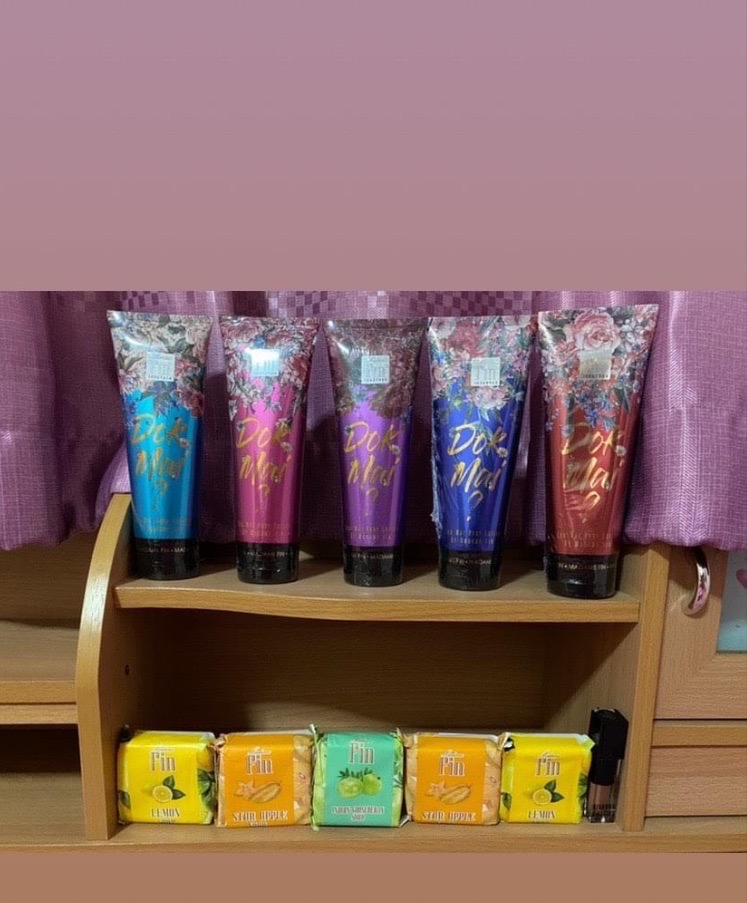 # โปร D5 # โลชั่นน้ำหอมมาดามฟินดอกไม้ 5 หลอด สบู่สมุนไพร 5 ก้อน (แจ้งสีโลชั่นที่ต้องการตรงช่องหมายเหตุ)