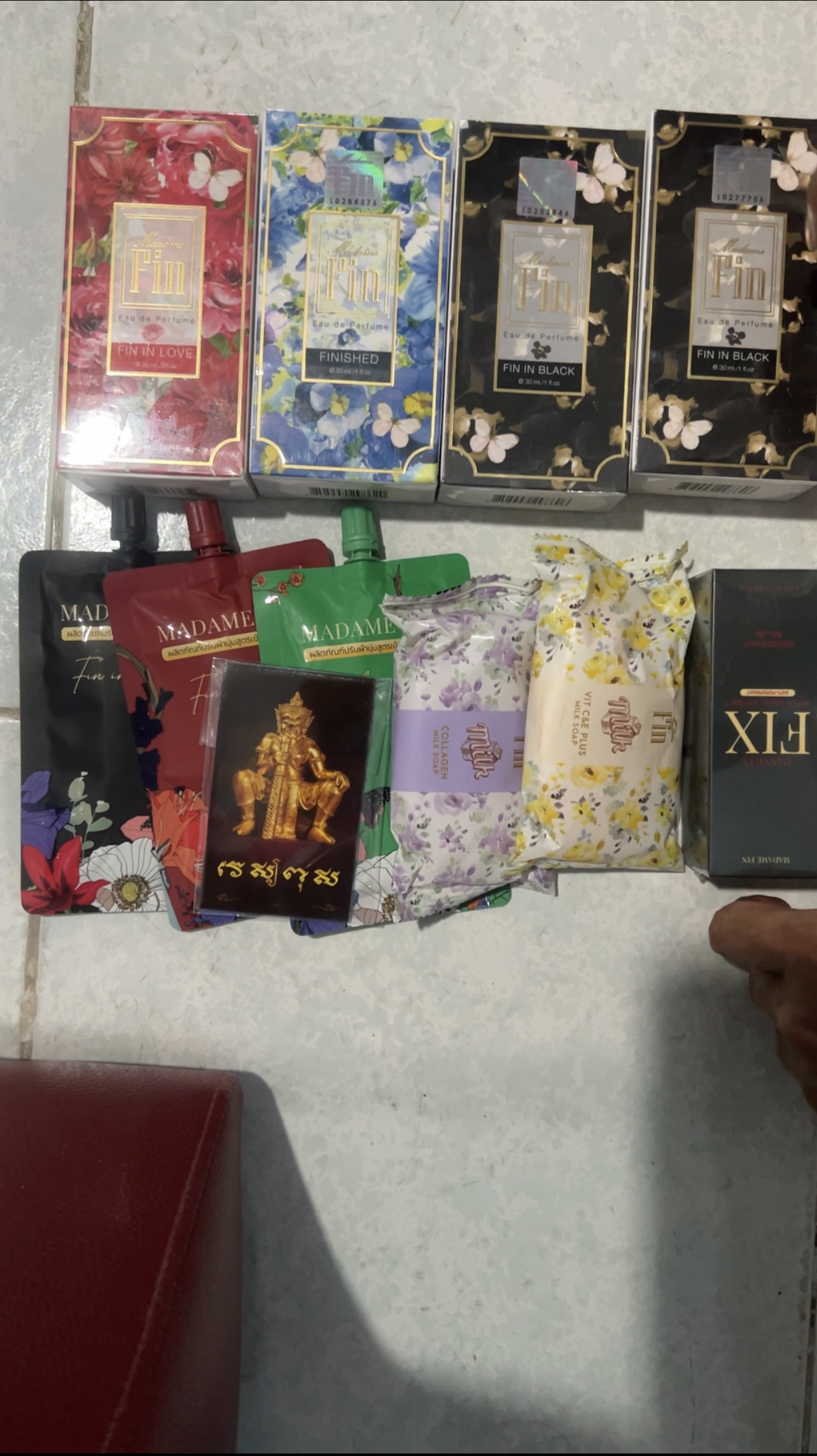 น้ำหอมมาดามฟิน ( โปร C4 ) น้ำหอมคลาสสิค 4 ขวด น้ำยาปรับผ้านุ่ม 3 ห่อ โรลออนFIX 2 ขวด สบู่ 2 ก้อน