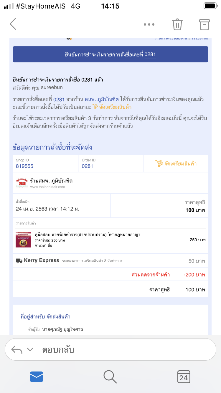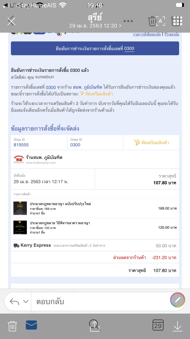 การสั่งซื้อสะดวก แจ้งข้อมูลการติดต่อทุกขั้นตอน ทำให้ไม่กังวลใจว่าสั่งซื้อแล้วหรือไม่ สรุปว่าถูกใจมากๆ เลย